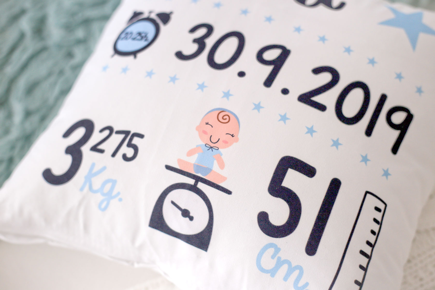 📐 Tamaño · Formato cuadrado de 30×30 cm, ideal para cuna, cama o sillón.