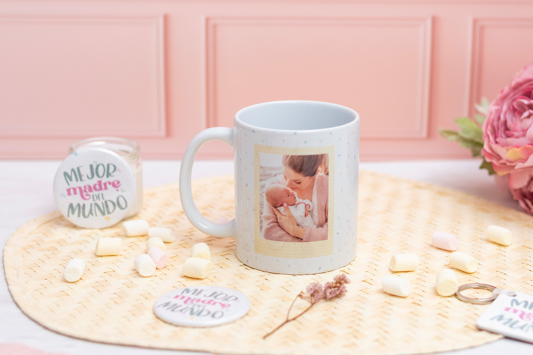 🧩 Plantillas temáticas · Elige entre diseños predefinidos del Día de la Madre y personalízalos con fotos y textos.