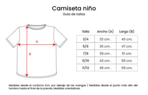 Camiseta de manga corta con diseño de huertano. Tejido compactado que aporta suavidad y mayor durabilidad. Material: 100% algodón, punto liso, 180 g/m². Personalízalo con el nombre del pequeño huertano. Tallas disponibles: 3/4 años – 32 cm / 43 cm 5/6 años – 35 cm / 47 cm 7/8 años – 39 cm / 51…